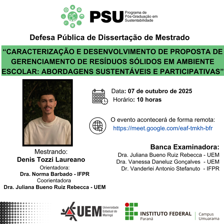 07/10/2025 - DEFESA DE DISSERTAÇÃO - Mestrando: Denis Tozzi Laureano - Orientadora: Dra.Norma Barbado / Coorientadora Dra. Juliana Bueno Ruiz Rebecca