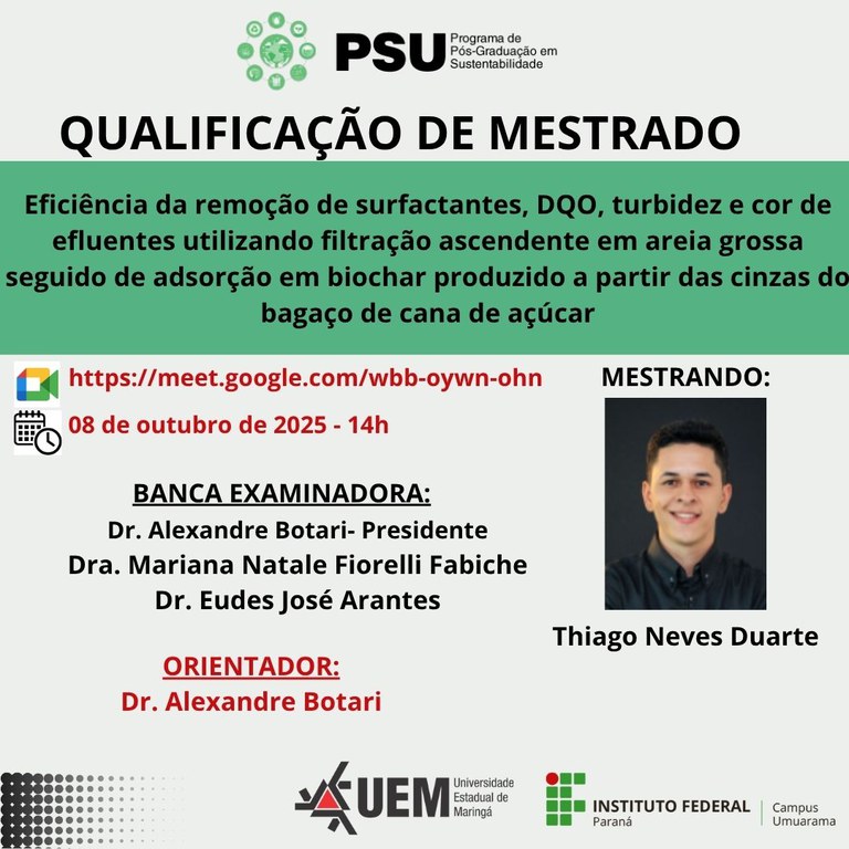 08/10/2025 - QUALIFICAÇÃO - Mestrando:Thiago Neves Duarte - Orientador: Prof. Dr. Alexandre Botari